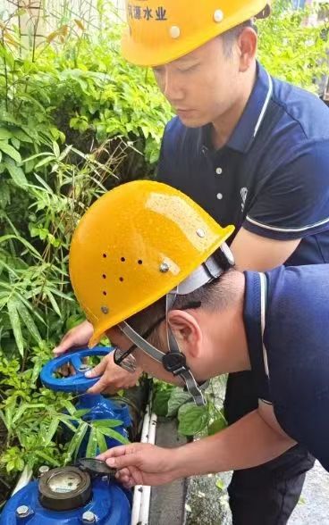 (河源市水業(yè)集團(tuán)工作人員現(xiàn)場檢查供水壓力、水質(zhì)等情況)