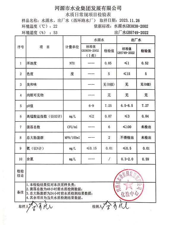 2023年11月26日水質(zhì)檢驗(yàn)報告 ???