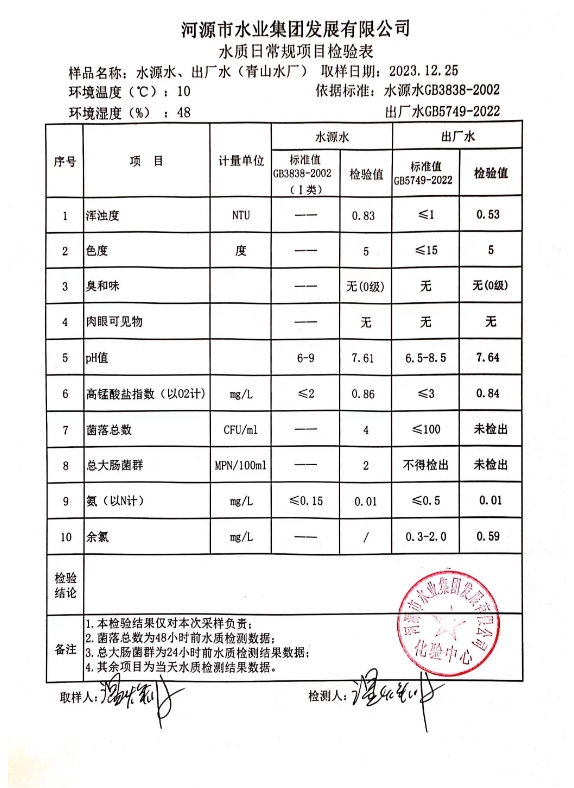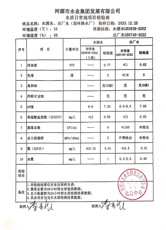 2023年12月25日水質(zhì)檢驗(yàn)報(bào)告