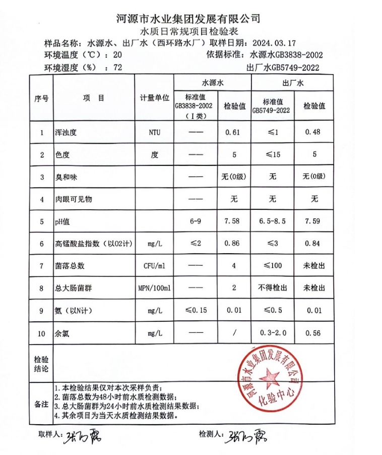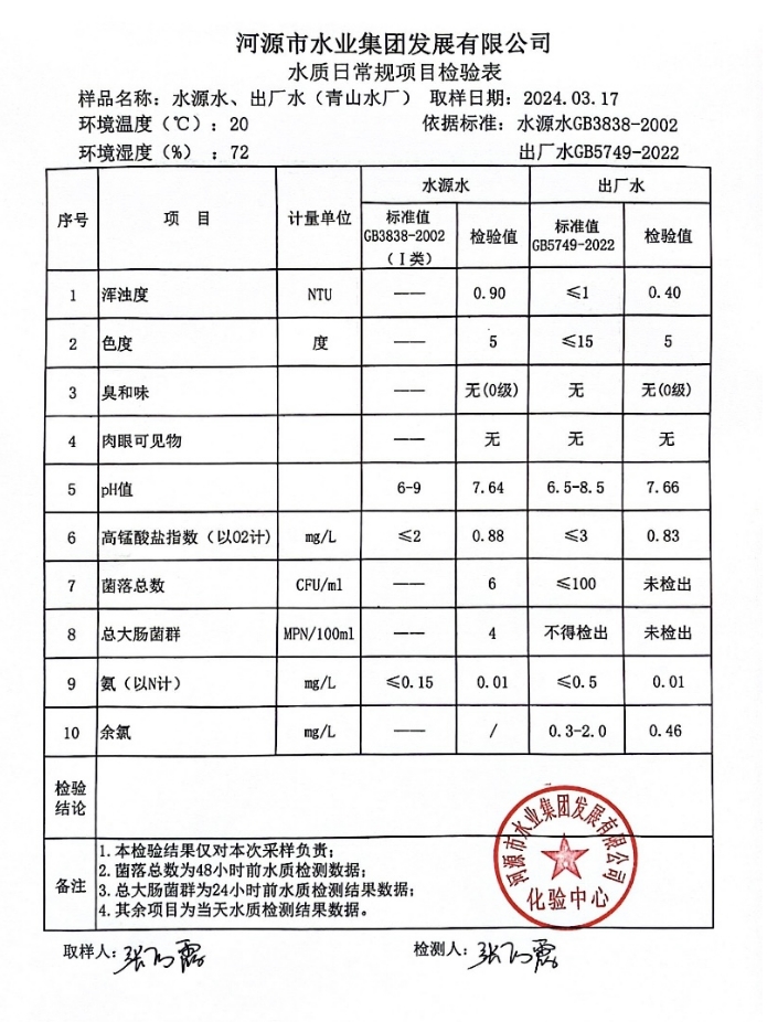 2024年3月17日水質(zhì)檢驗(yàn)報(bào)告