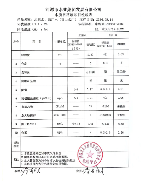 2024年5月14日水質(zhì)檢驗(yàn)報(bào)告 ???