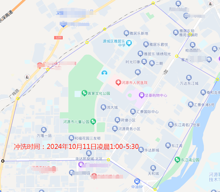 2.降壓或停水區(qū)域:新江一路至三路片區(qū)、黃子洞村片區(qū)、新塘村片區(qū)、白嶺頭村片區(qū)、豐源新村、高塘村片區(qū)、雅居樂明珠城、碧桂園未來城、三鳥市場、西一路至五路東西片區(qū)、火車站站前片區(qū)等。(詳見附圖1)