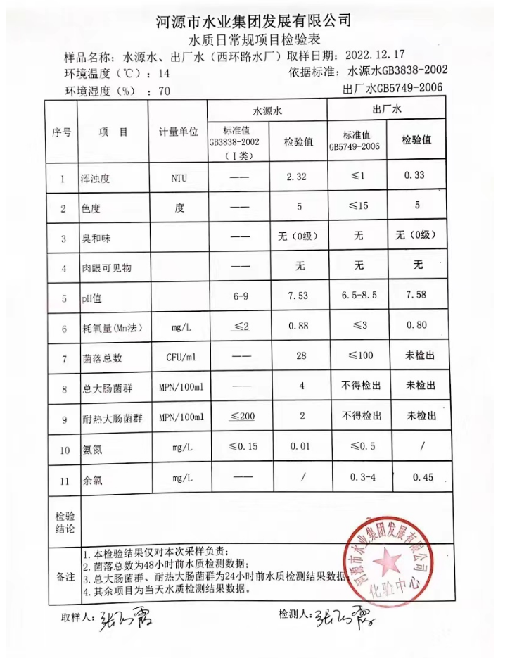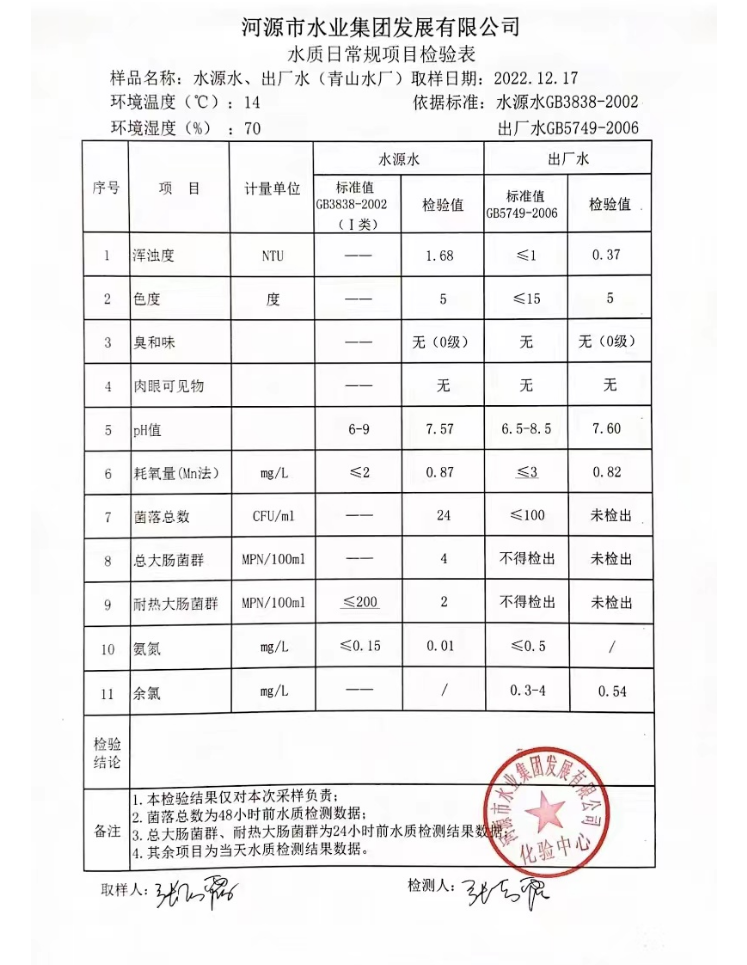 2022年12月17日水質(zhì)檢驗(yàn)報(bào)告