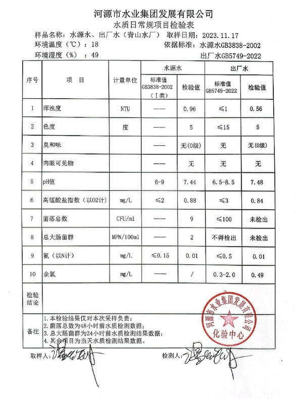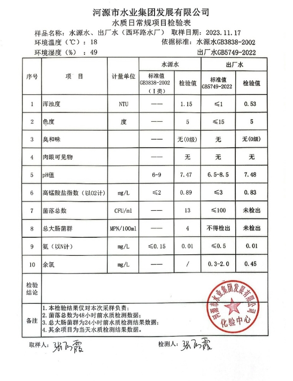2023年11月17日水質(zhì)檢驗報告 ???