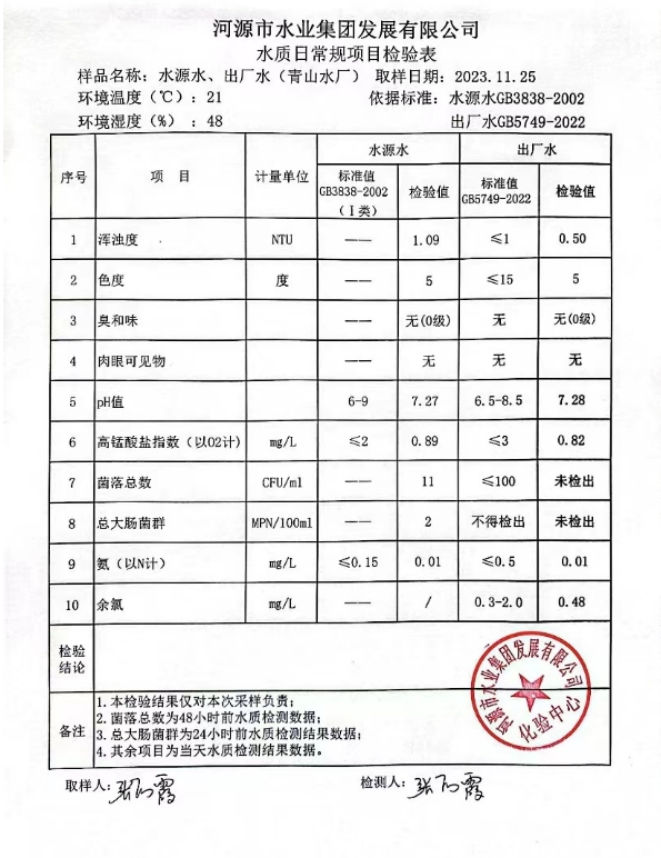 2023年11月25日水質(zhì)檢驗(yàn)報(bào)告 ???