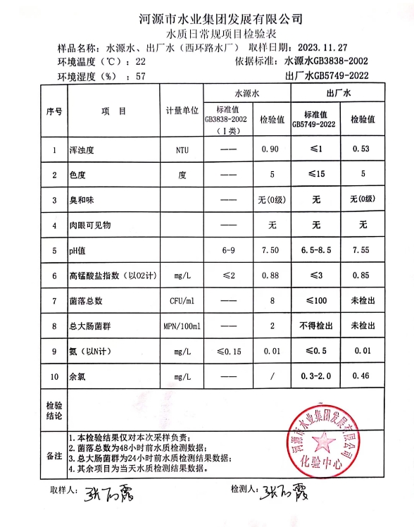 2023年11月27日水質(zhì)檢驗(yàn)報(bào)告 ???