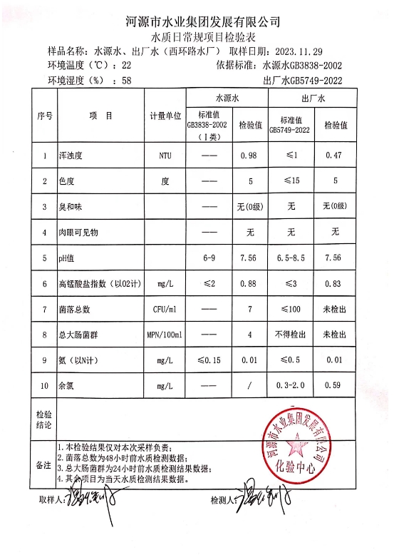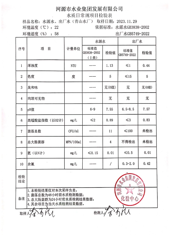 2023年11月29日水質(zhì)檢驗(yàn)報告 ???