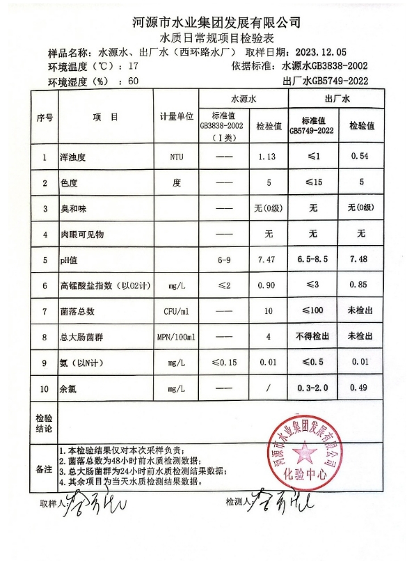 2023年12月5日水質(zhì)檢驗(yàn)報(bào)告 ???