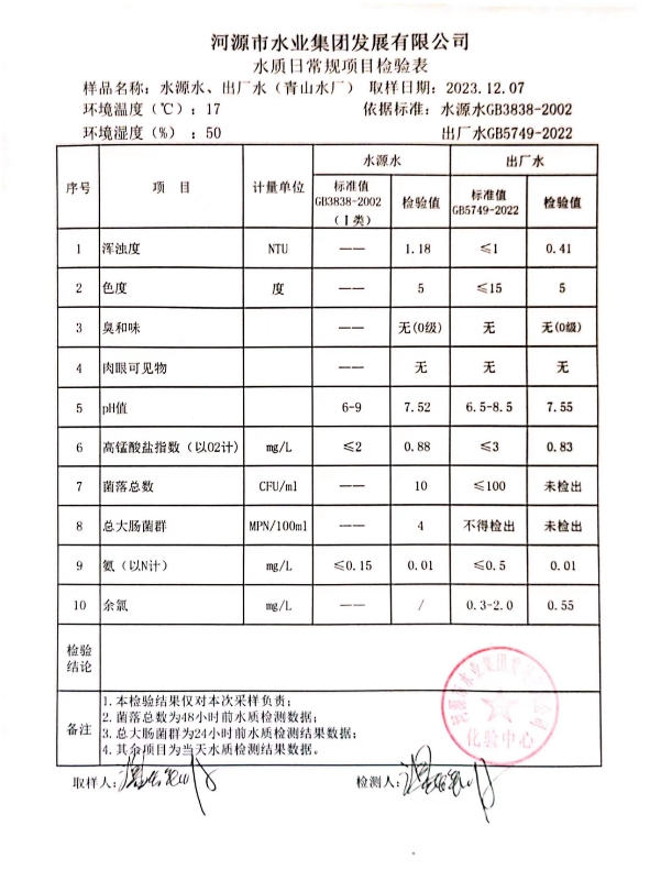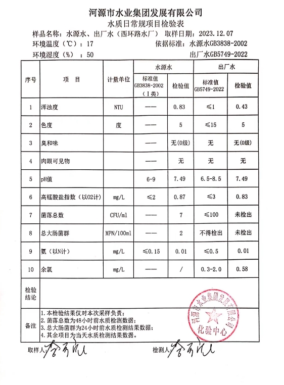 2023年12月7日水質(zhì)檢驗報告 ???