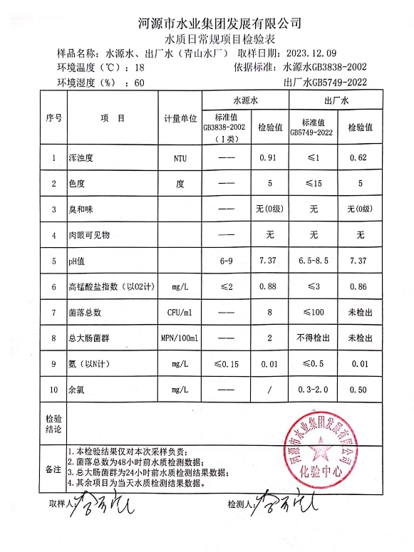 2023年12月9日水質(zhì)檢驗(yàn)報(bào)告 ???