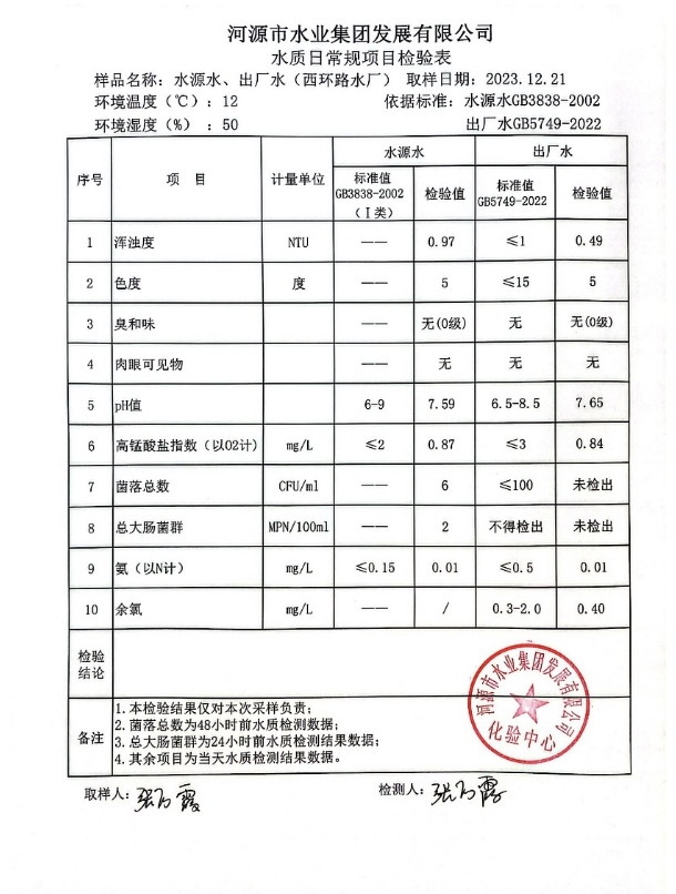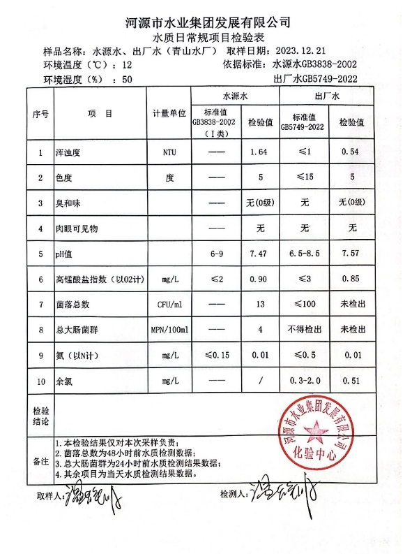 2023年12月21日水質(zhì)檢驗(yàn)報(bào)告 ???