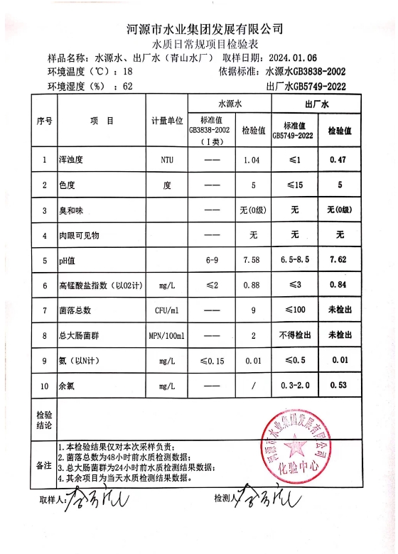 2024年1月6日水質(zhì)檢驗(yàn)報(bào)告