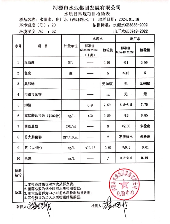 2024年1月18日水質(zhì)檢驗(yàn)報(bào)告 ???
