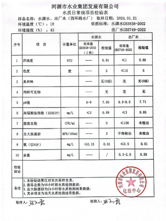 2024年1月21日水質(zhì)檢驗(yàn)報(bào)告 ???