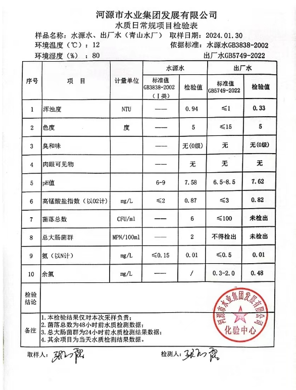 2024年1月30日水質(zhì)檢驗(yàn)報(bào)告 ???