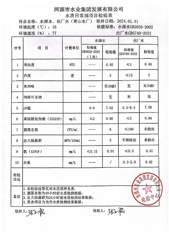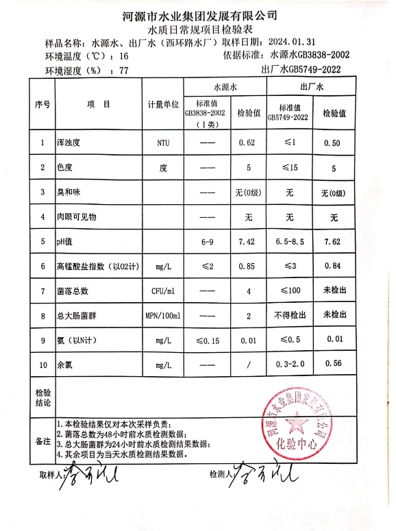 2024年1月31日水質(zhì)檢驗報告 ???