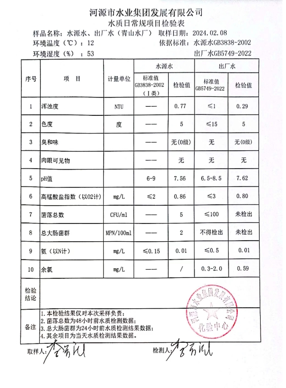 2024年2月8日水質(zhì)檢驗(yàn)報告 ???