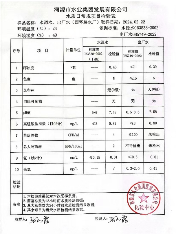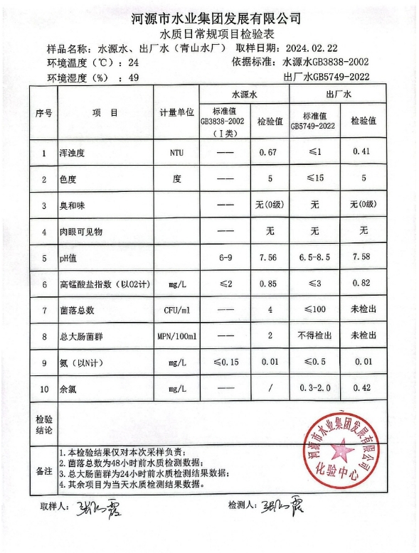 2024年2月22日水質(zhì)檢驗報告 ???