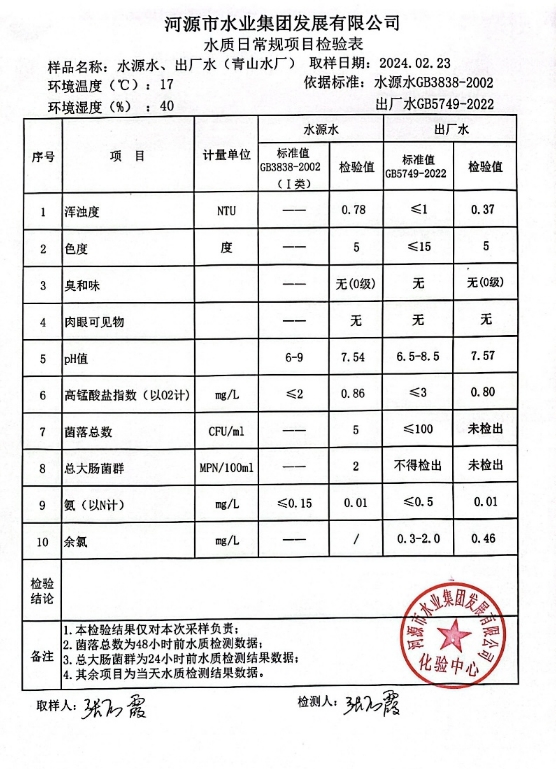 2024年2月23日水質(zhì)檢驗報告 ???