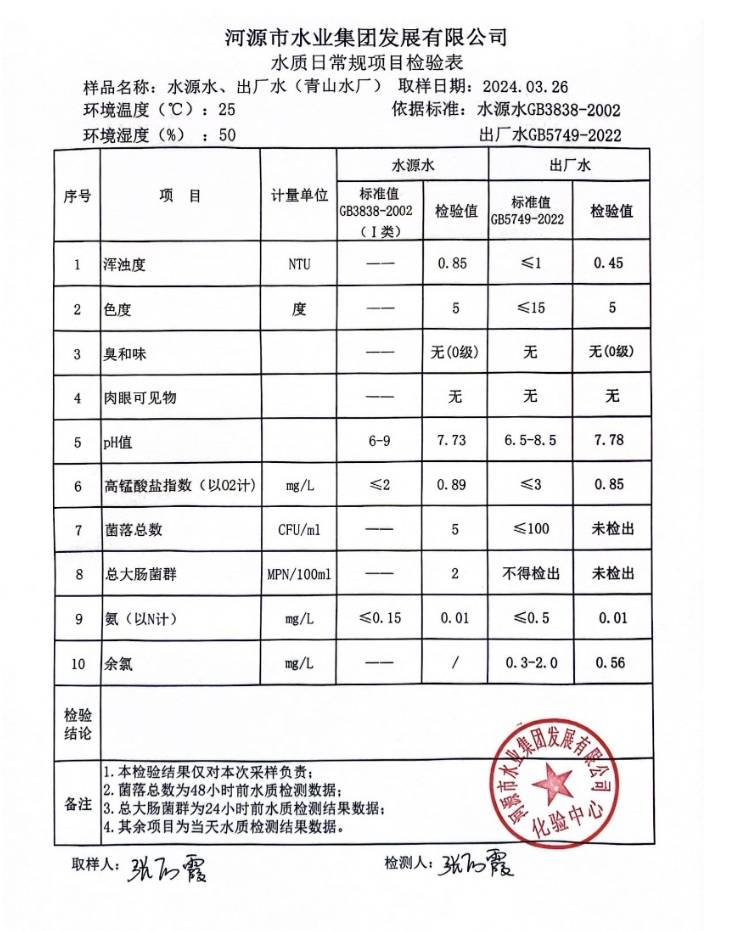 2024年3月26日水質(zhì)檢驗(yàn)報(bào)告
