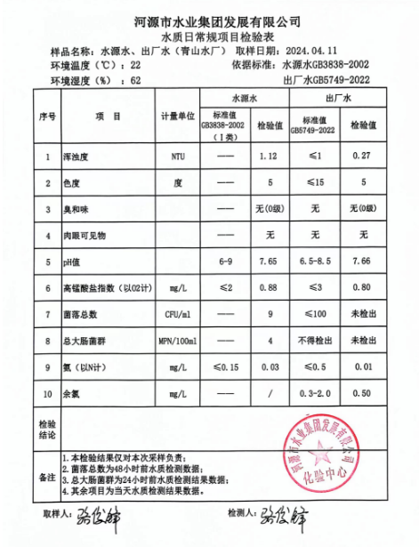 2024年4月11日水質(zhì)檢驗報告
