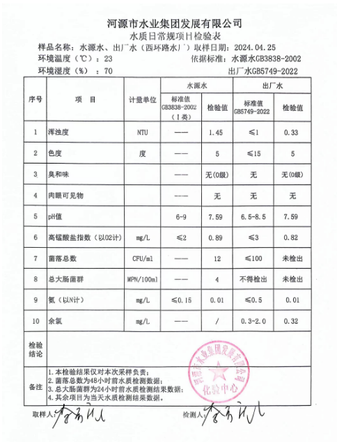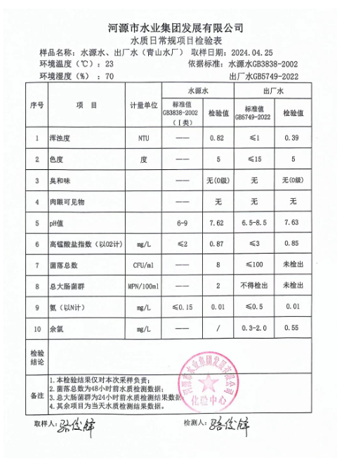 2024年4月25日水質(zhì)檢驗報告 ???