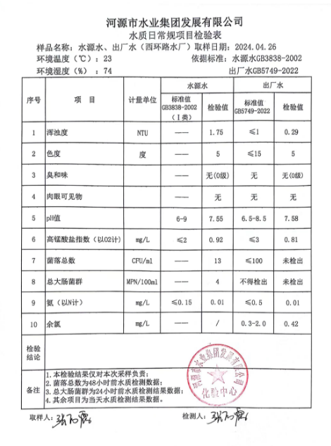 2024年4月26日水質(zhì)檢驗(yàn)報(bào)告 ???