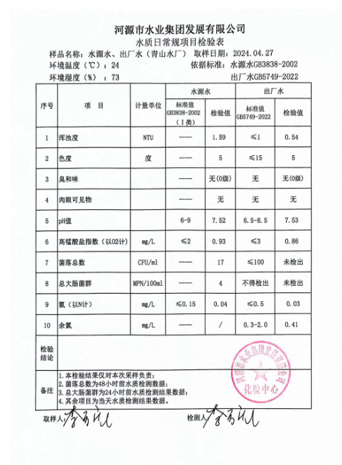 2024年4月27日水質(zhì)檢驗報告 ???