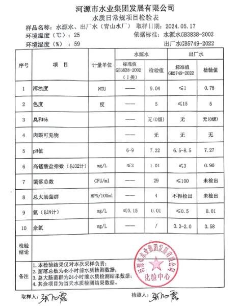 2024年5月17日水質(zhì)檢驗(yàn)報(bào)告 ???