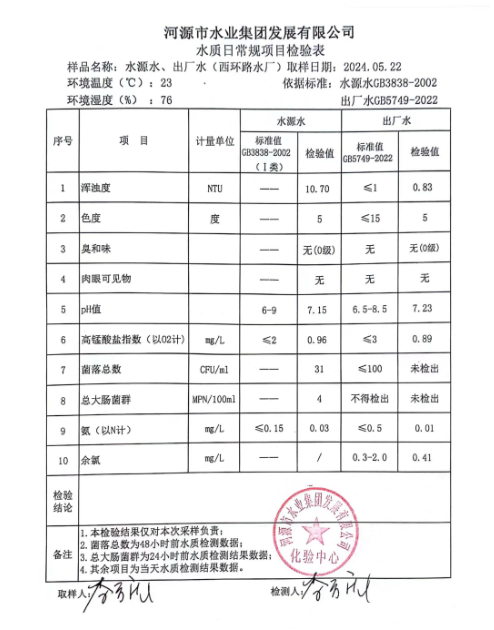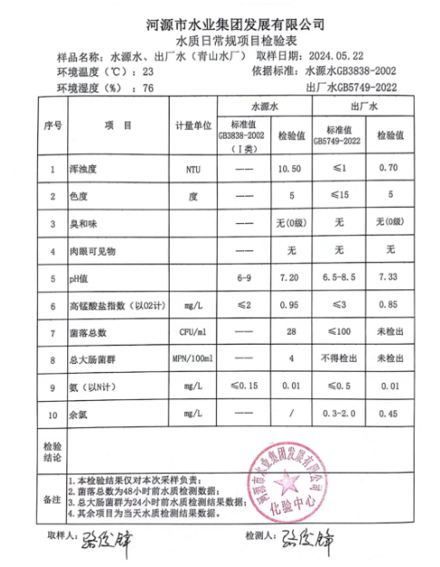 2024年5月22日水質(zhì)檢驗(yàn)報(bào)告 ???