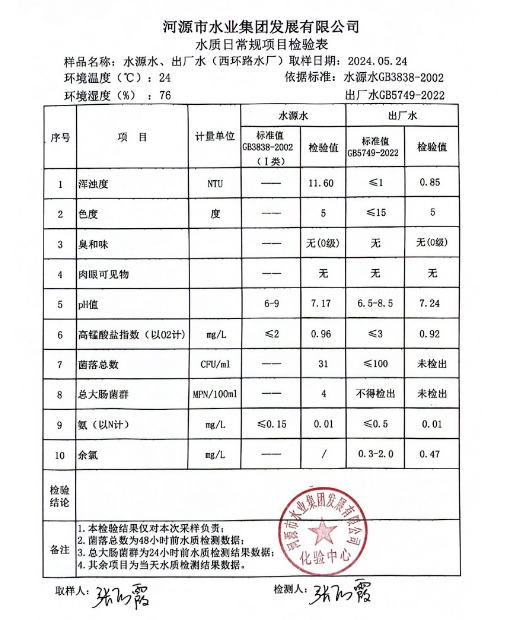 2024年5月24日水質(zhì)檢驗報告 ???
