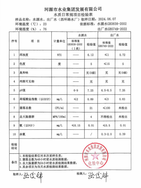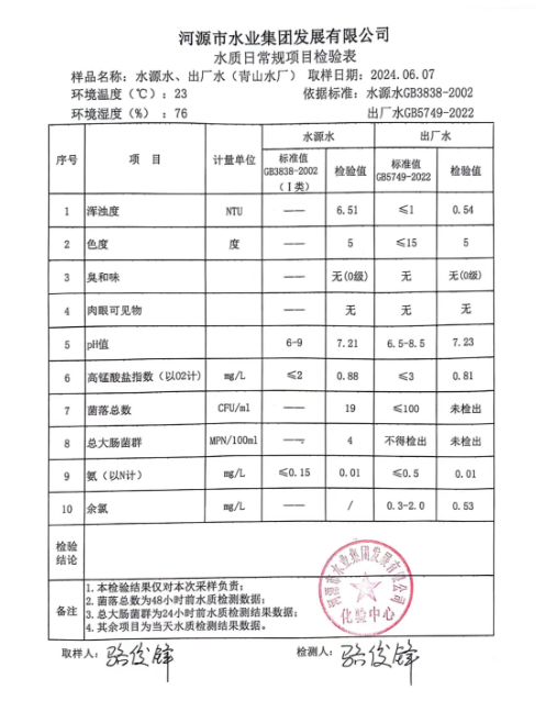 2024年6月7日水質(zhì)檢驗報告 ???