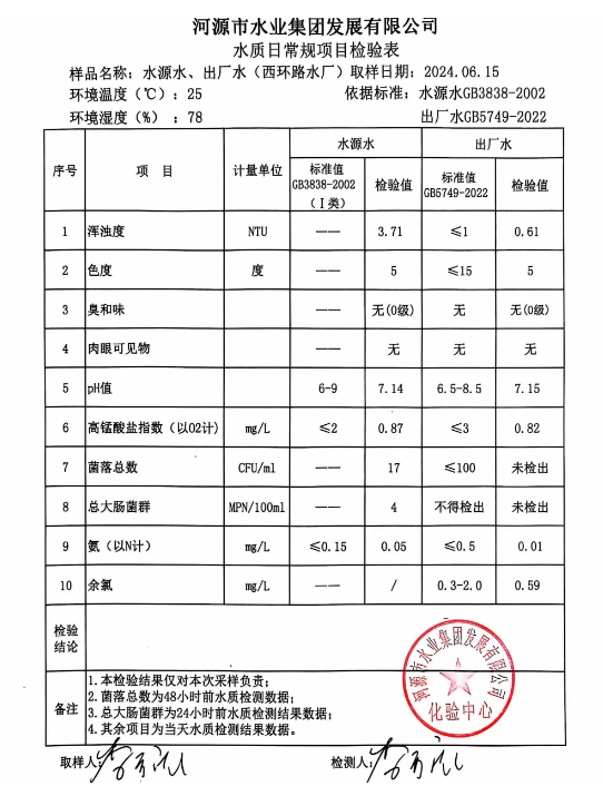 2024年6月15日水質(zhì)檢驗(yàn)報(bào)告