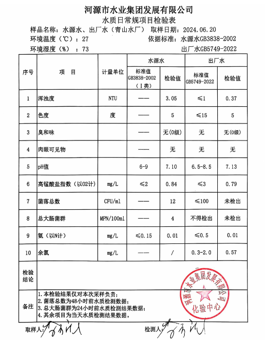 2024年6月20日水質檢驗報告