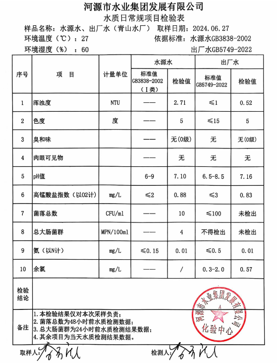 2024年6月27日水質(zhì)檢驗(yàn)報(bào)告