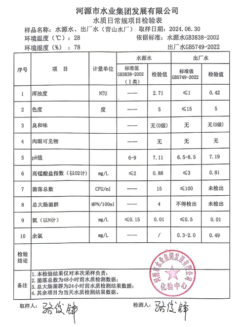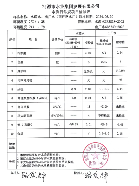 2024年6月30日水質(zhì)檢驗(yàn)報告