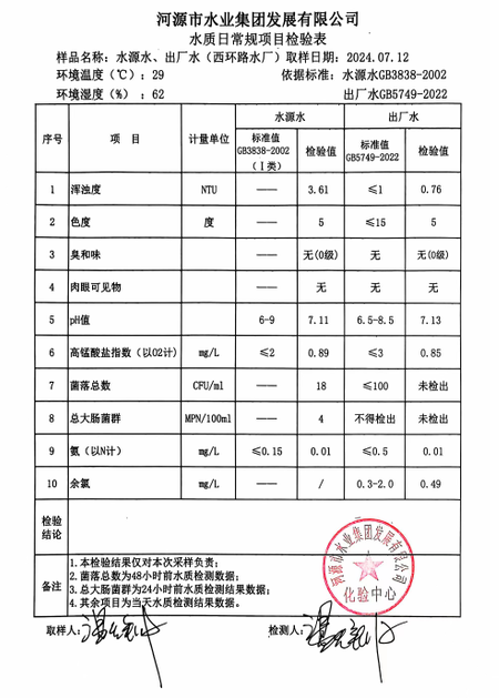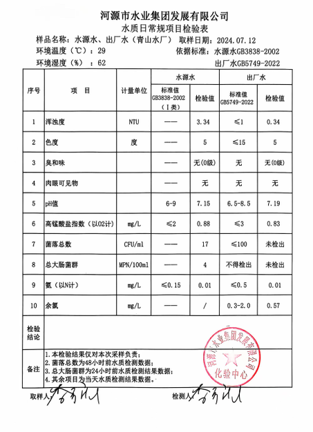 2024年7月12日水質(zhì)檢驗(yàn)報(bào)告