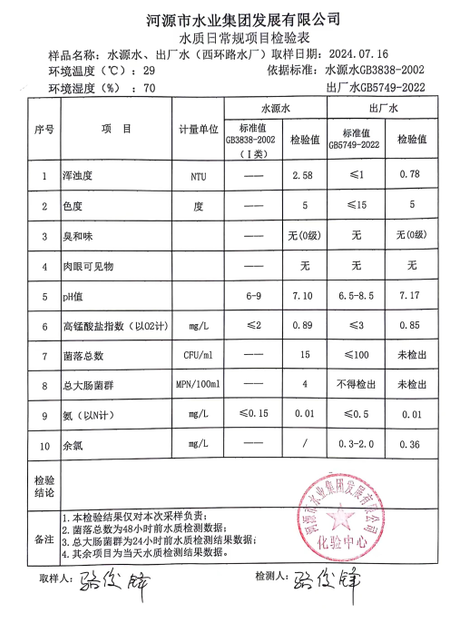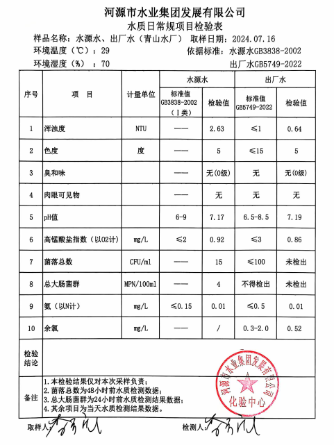 2024年7月16日水質(zhì)檢驗(yàn)報(bào)告