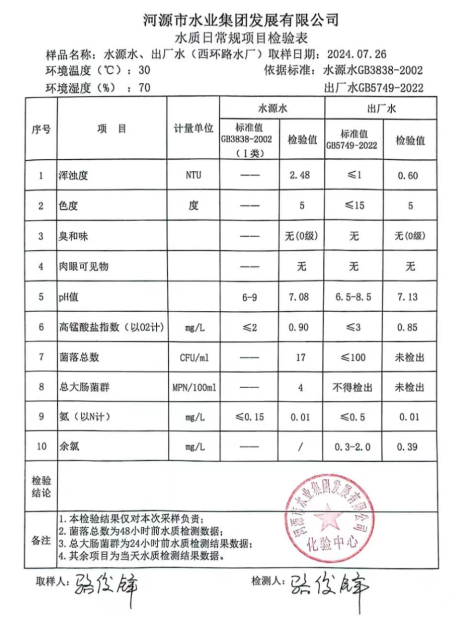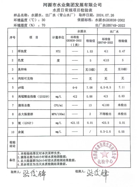 2024年7月26日水質(zhì)檢驗報告