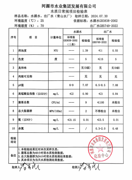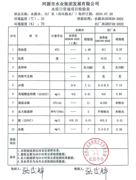 2024年7月30日水質(zhì)檢驗報告
