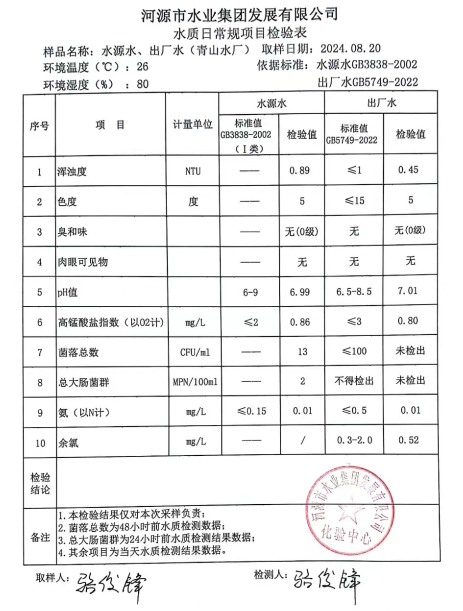2024年8月20日水質(zhì)檢驗(yàn)報(bào)告