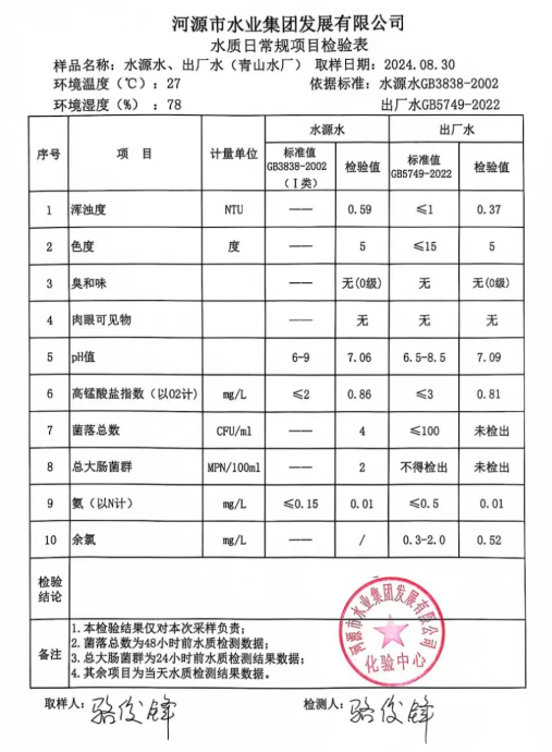 2024年8月30日水質(zhì)檢驗(yàn)報(bào)告