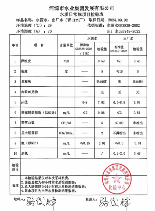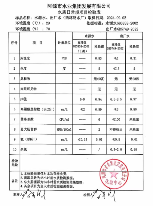 2024年9月2日水質(zhì)檢驗(yàn)報告
