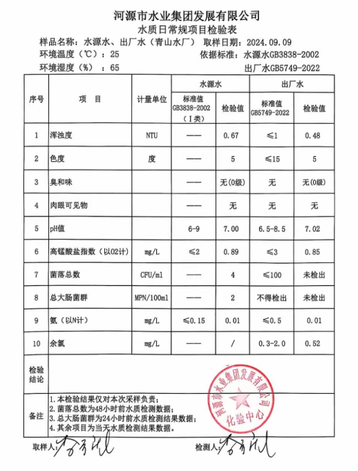 2024年9月9日水質檢驗報告
