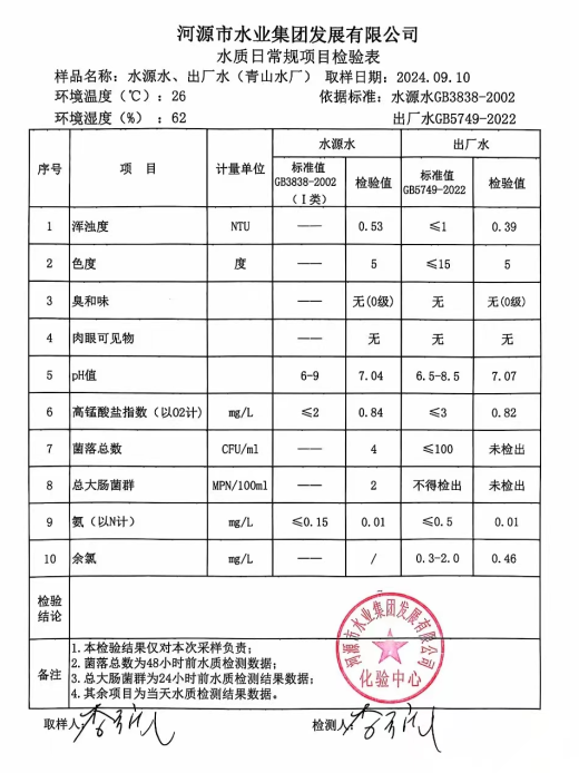 2024年9月10日水質(zhì)檢驗(yàn)報(bào)告