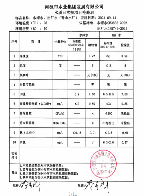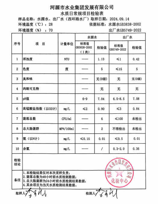 2024年9月14日水質(zhì)檢驗(yàn)報(bào)告