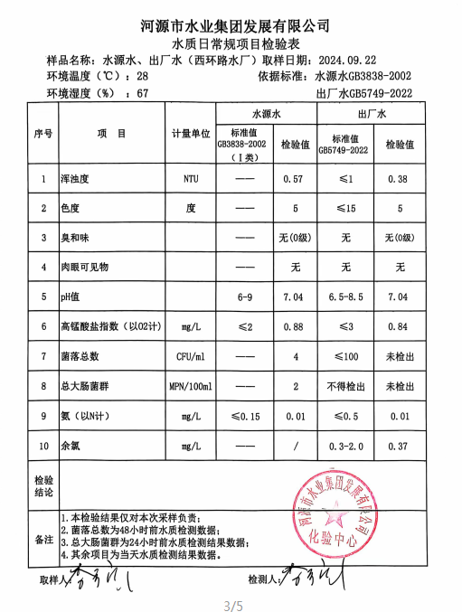2024年9月22日水質(zhì)檢驗(yàn)報(bào)告