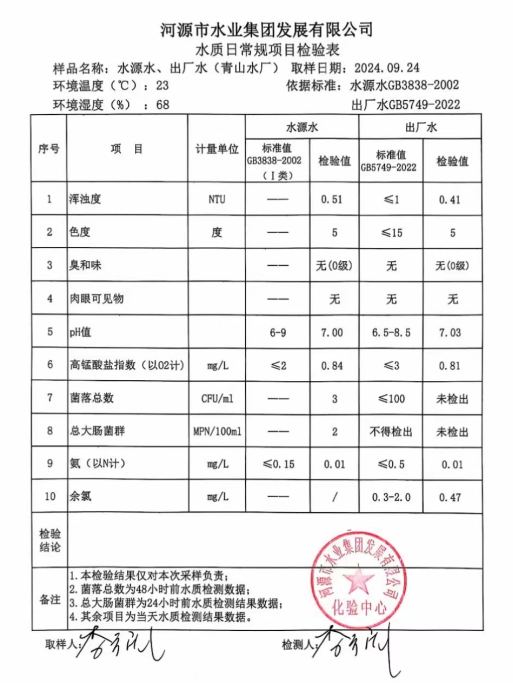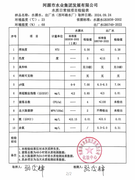 2024年9月24日水質(zhì)檢驗報告