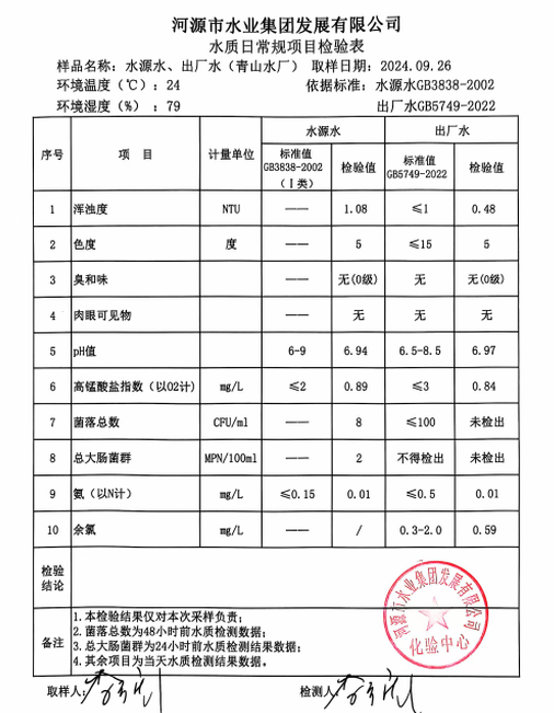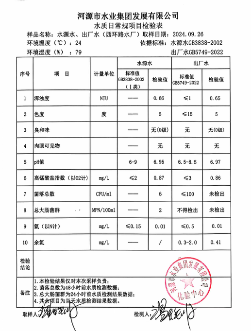 2024年9月26日水質(zhì)檢驗(yàn)報告