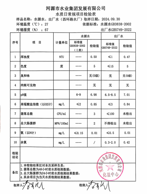2024年9月30日水質(zhì)檢驗報告